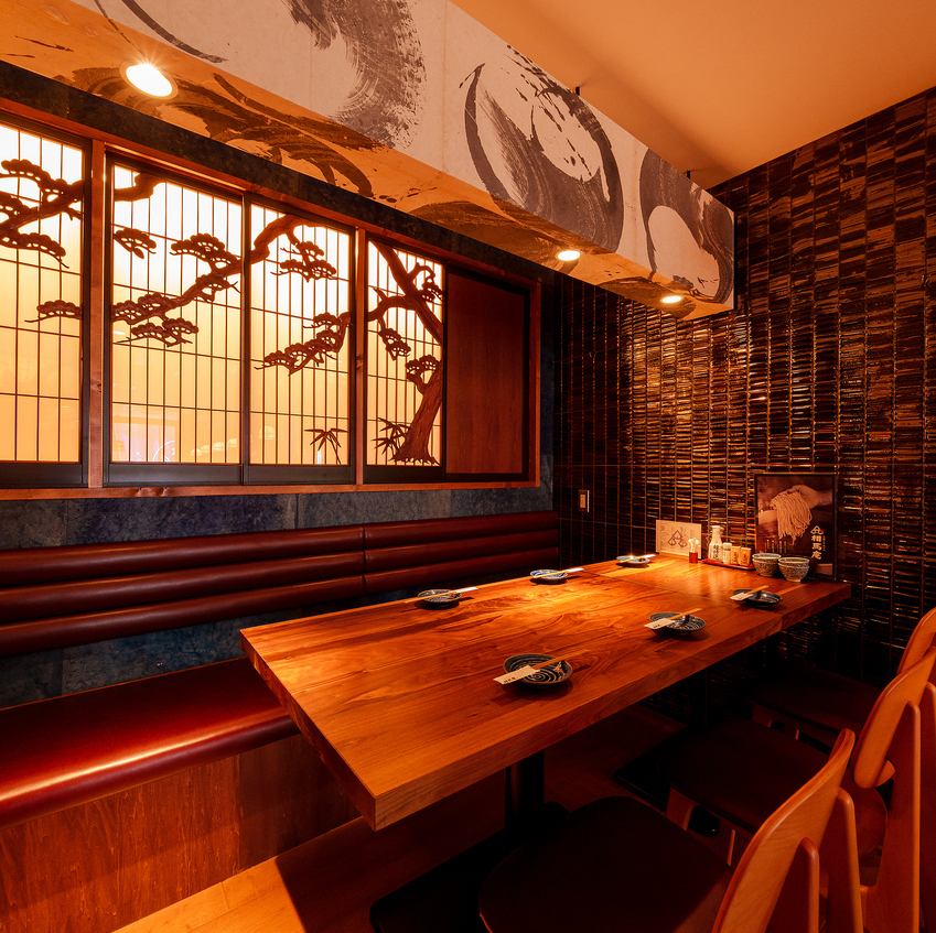 店内はしっとりと大人の雰囲気漂う和空間。4~6名様での少人数でのお食事はもちろん、テーブルを繋げて10名様でのご利用も可能。飲み放題付きコースもございますので、各種宴会にも是非ご利用ください。